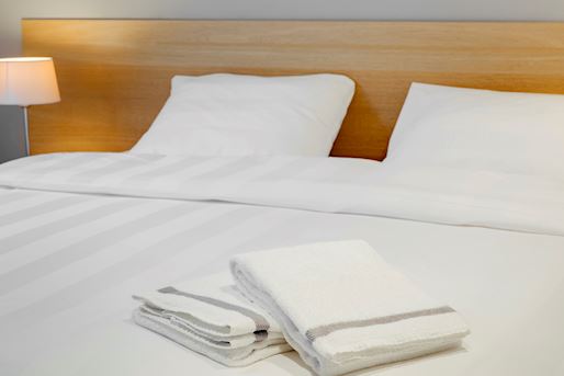 - Bedroom with a 2-person Auping box spring bed, 2-personsoft mattress topper and flatscreen TV