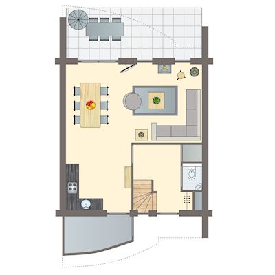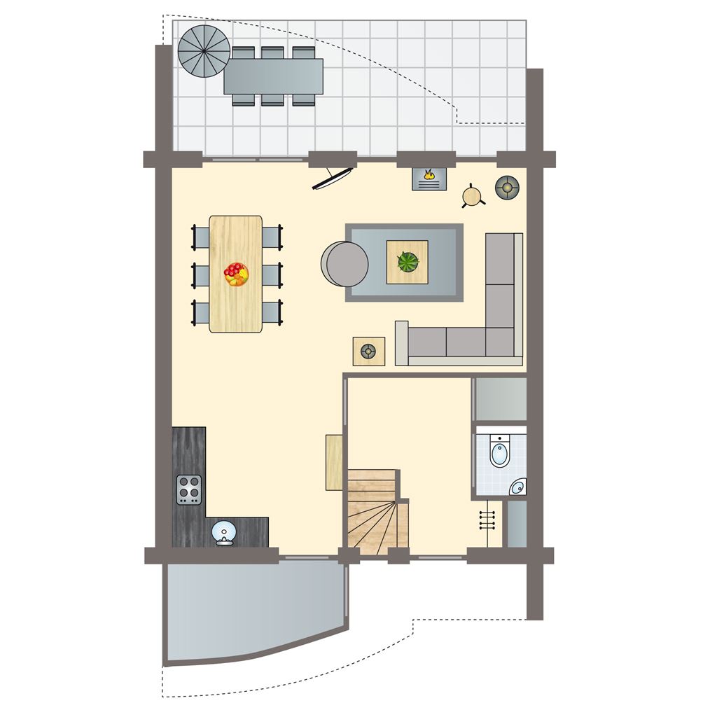 - Bathroom with shower in whirlpool, washbasin and toilet at the first floor