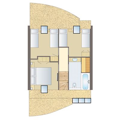- Two bedrooms with two single Auping box spring beds on the first floor