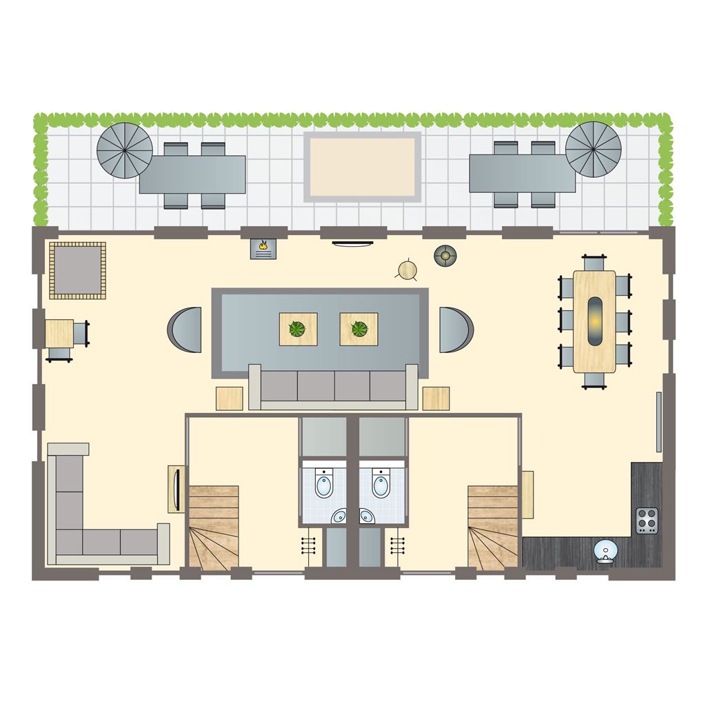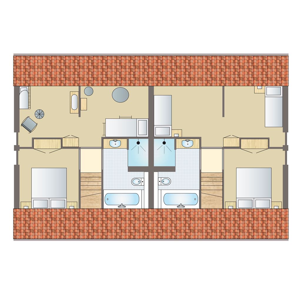 - Two bedrooms with a double Auping box spring bed (2-person duvet), soft mattress topper and flatscreen TV on the first floor