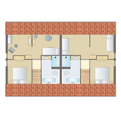 - Two bathrooms with bathtub, shower cubicle, washbasin and toilet on the first floor
